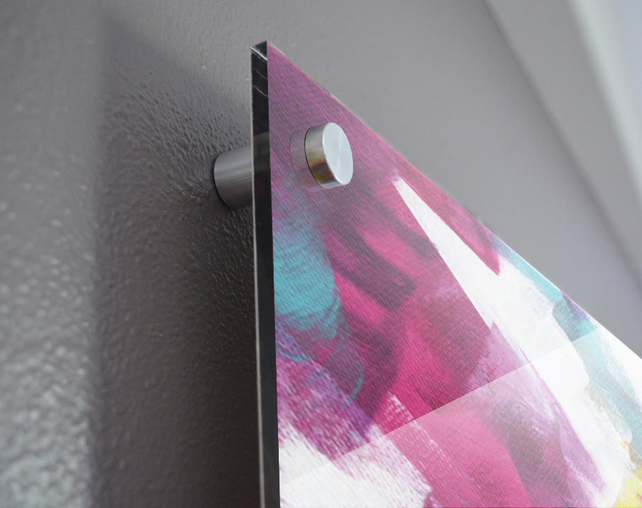 Impression sur acrylique avec entretoises ( cylindres métalliques )